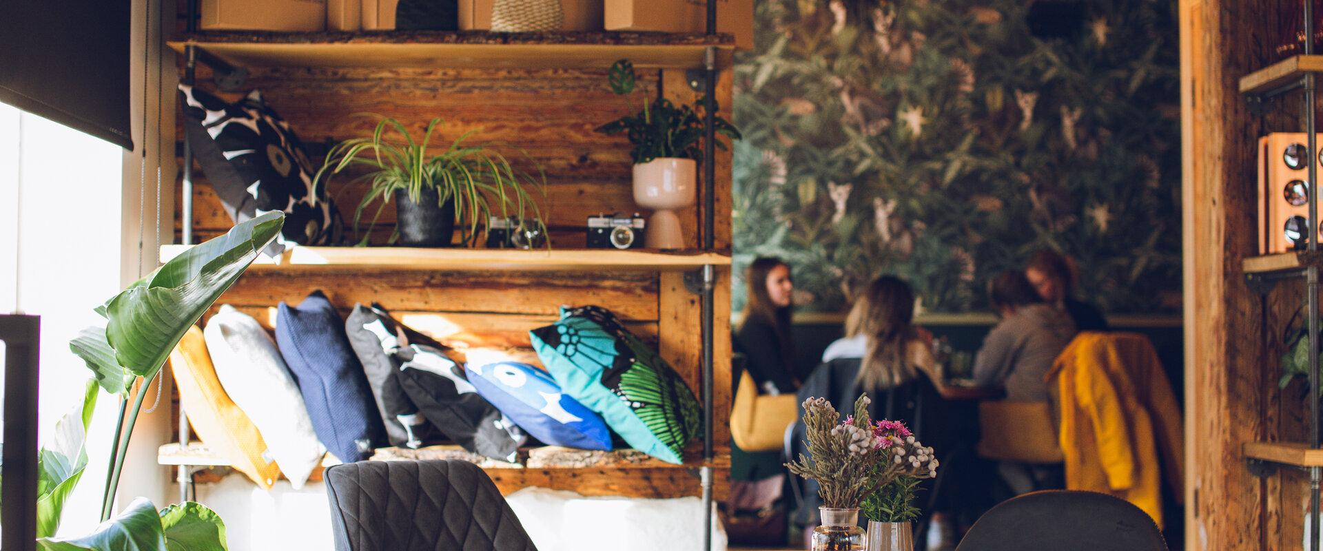 An einer Seite des Cafés befindet sich ein Lebensstilgeschäft, dort kann sich der Gast zum Zeitvertreib mit den Erzeugnissen bekannt machen, doch auch ein vorbeieilender Kunde kann ein Geschenk oder ein Souvenir kaufen. Wir haben uns auf das Werk der Designer unserer Stadt konzentriert.