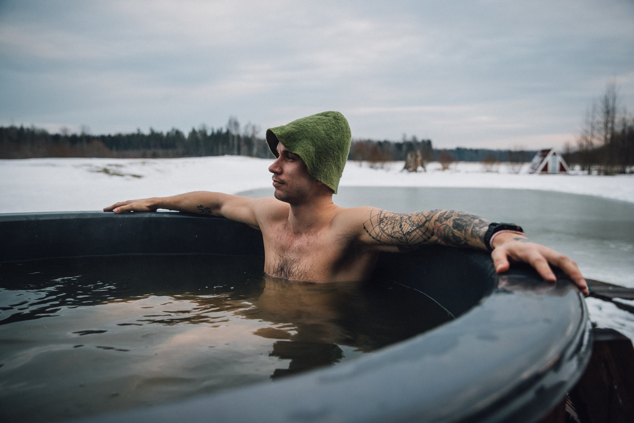 The sauna house has a kitchen, a steam room, washing facilities, and accommodation for up to 10 people.