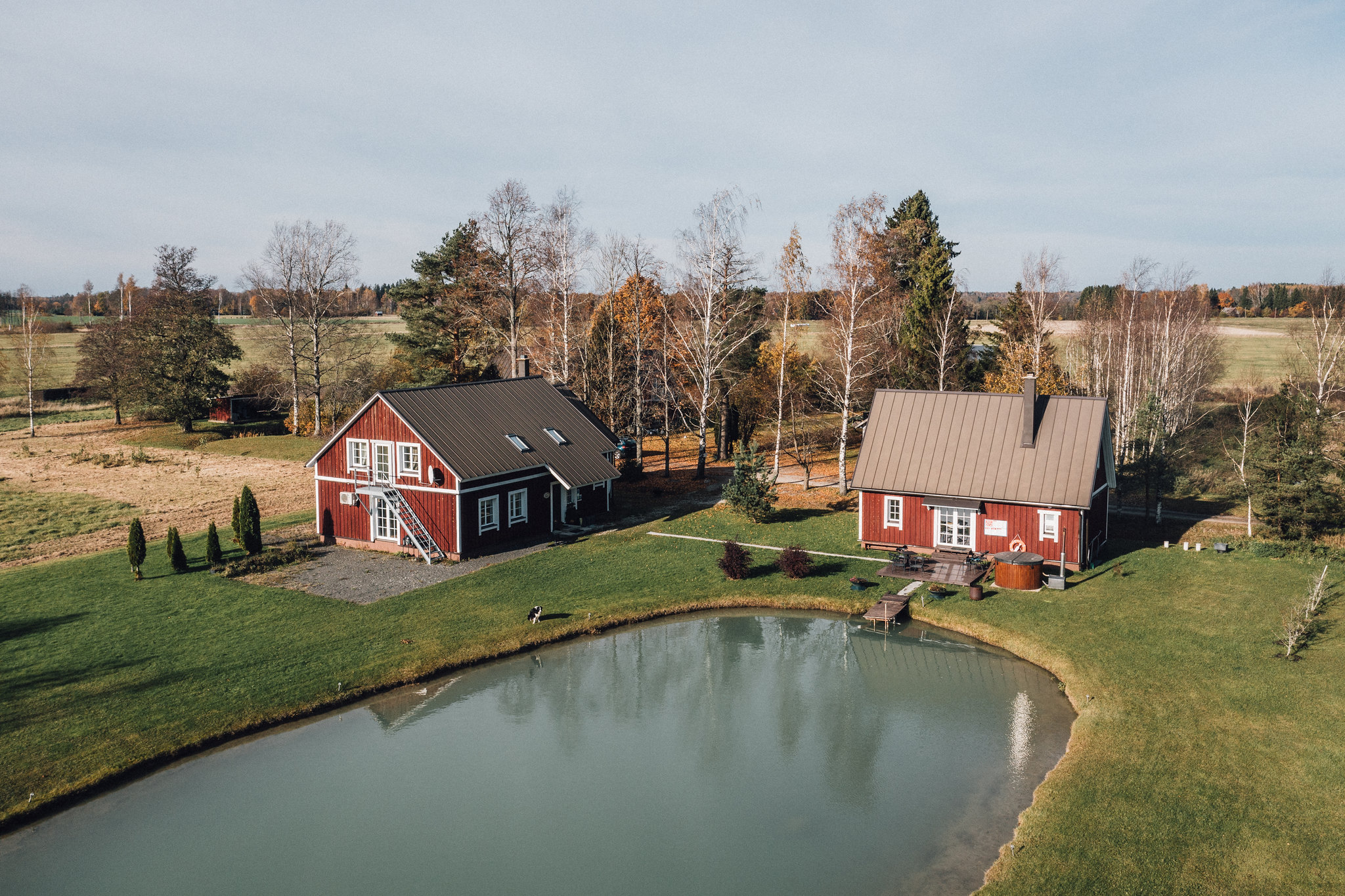 The house is located on the shore of a pond, which can be enjoyed all year round.