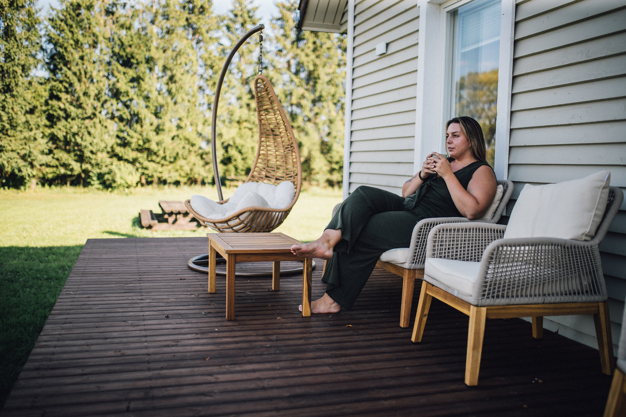 The villa’s interior design and furnishings are inspired by the surrounding nature, capturing the cozy atmosphere of a countryside house while incorporating modern comforts.