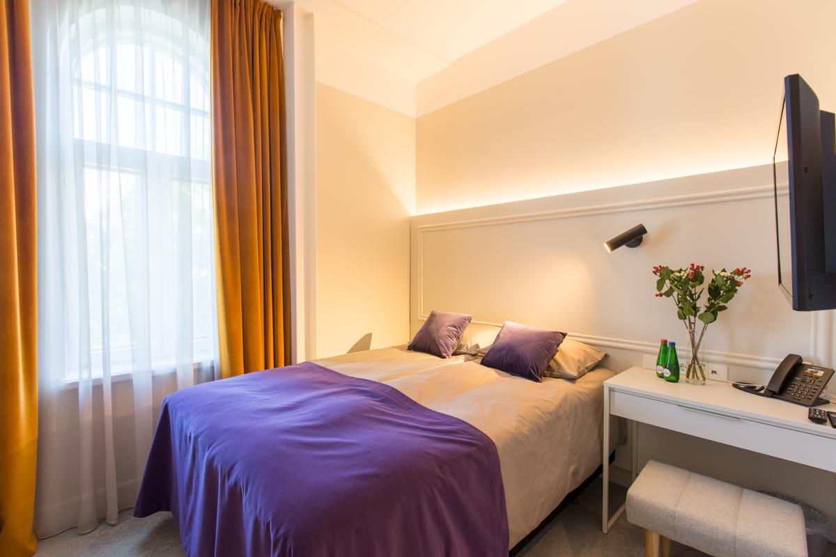 Viesnīcā ir 37 numuri, tostarp ģimenes numuri un numuri invalīdiem. No numuriem paveras skats uz pilsētas skaistajiem parkiem vai gaišu stikla jumta ātriju. Viesnīcā ir moderna semināru telpa, elegants restorāns Ormisson un mājīga kafejnīca, kas piedāvā visu vajadzīgo gan atpūtniekiem, gan biznesa viesiem.
