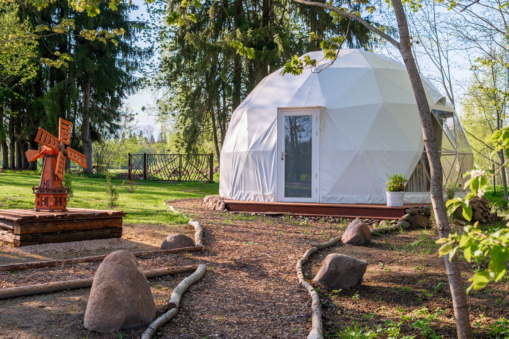 Hubane panoraamvaatega kuppelmaja ja mahedat leili pakkuv klaasseinaga saun keset lummavat loodust. Asume Kesk-Eestis, Viljandimaal, Järtsaare külas – ümbritsetud soode ja rabadega. Puhkekompleksis on olemas kõik meeldejäävaks puhkuseks – kuppelmaja, tualett, saun, dušš, lõkkease, grill, tiik, ujumissild, terrass, põlispuud, imeline linnulaul ja lummav loodus.