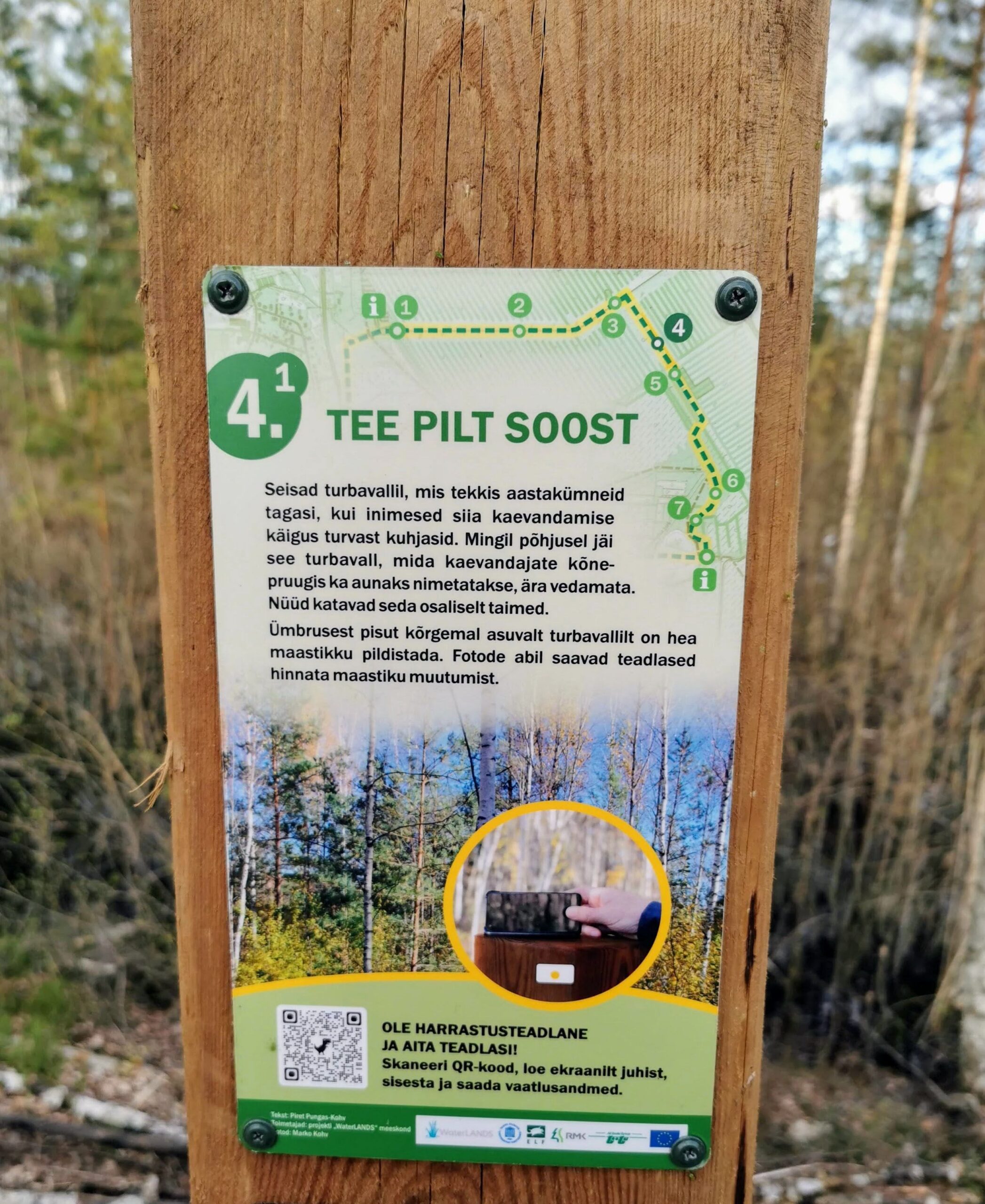 Rajal on seitse peatuspunkti, kus külastajad saavad mõõta veetaset, teha fotosid, jälgida taimestikku ja loomastikku ning sisestada oma vaatlused teadlastele abiks. Infotahvlitel olevate QR-koodide kaudu avaneb virtuaalne keskkond, mis juhendab vaatlustöid ja selgitab soo taastumise protsessi.