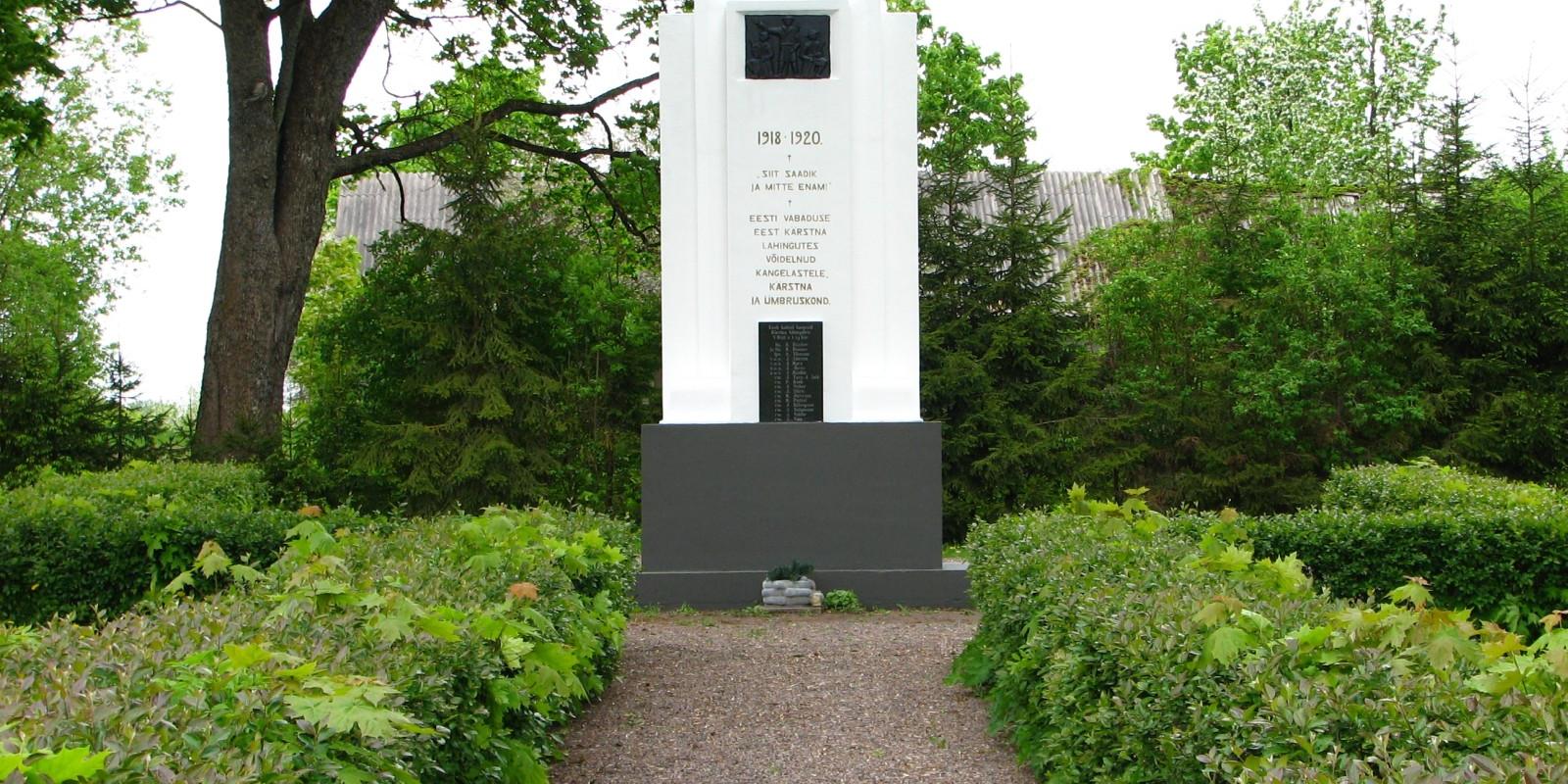 Kärstna lahingu ja selles langenud kaheksateistkümnele sõjamehele pühendatud mälestussammas avati esmakordselt 1928.a. Nagu paljud teisedki Vabadussõja monumendid, purustati see 1941.a. Taasavamine toimus aastal 1989.