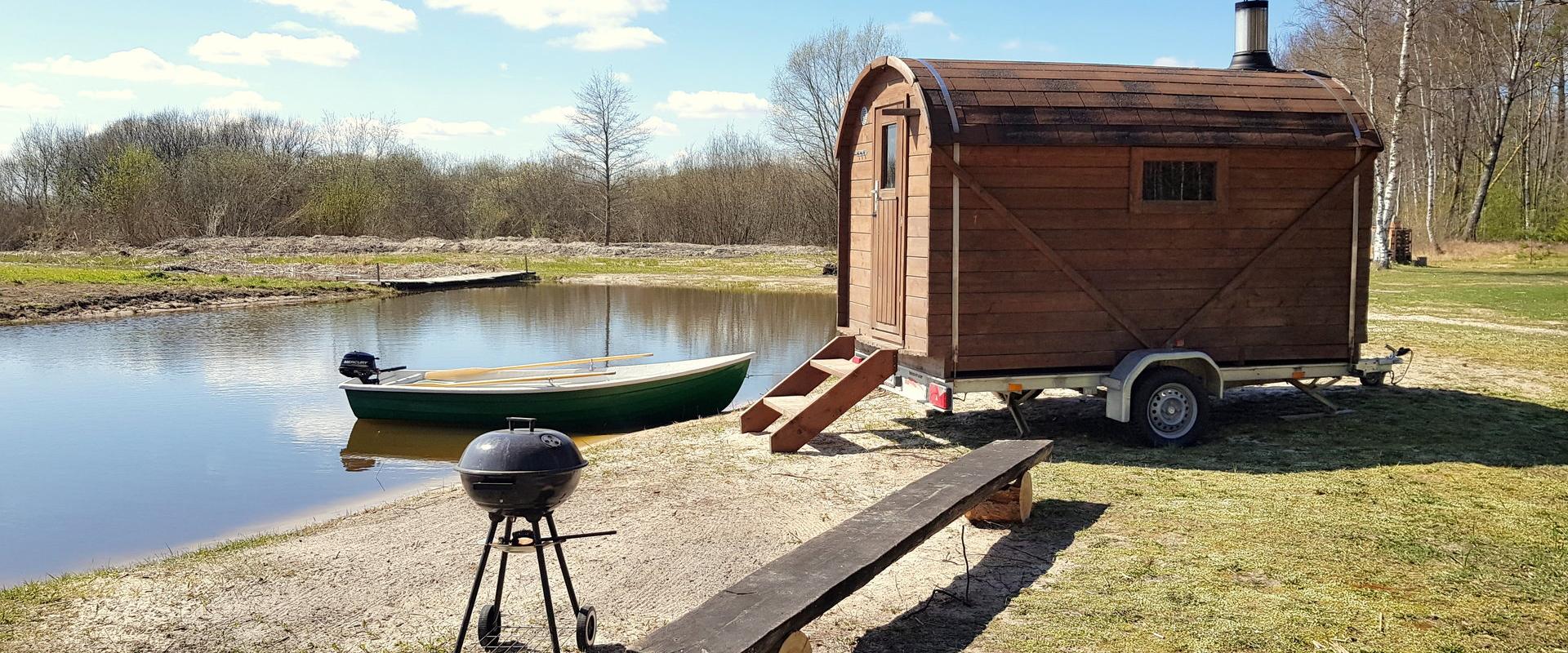 Pärast aktiivset päeva vees saad lõõgastuda haagissaunas, mis asub otse järvekaldal. Lisaks on võimalik kasutada grilli koos söe ja tarvikutega, et kalasaak kohe maitsvaks söömaajaks valmistada.
